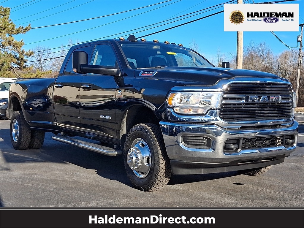 - Dominate the road and the worksite in this stunning pre-owned Black 2019 Ram 3500 Big Horn heavy-duty pickup engineered for unrelenting performance. At the heart of this beast is the legendary 6.7-liter Cummins Turbo Diesel I6 engine delivering immense torque and towing muscle that sets the standard in the segment. Equipped with the popular Big Horn trim this Crew Cab model offers a comfortable and spacious interior along with sought-after features like an available Uconnect infotainment system (typically with an 8.4-inch or 12-inch display on this model year) cloth seating and convenient power features throughout. Ready for any task this Ram 3500 is the ultimate blend of serious heavy-duty capability and everyday comfort making it the perfect choice for the truck buyer who demands power without compromise.